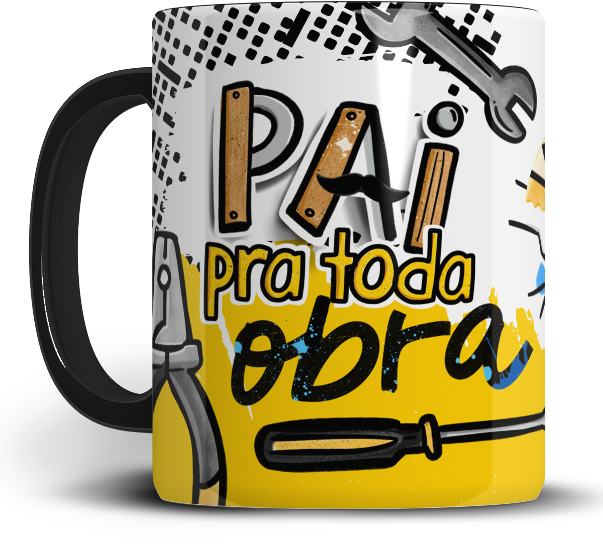 Caneca personalizada de porcelana de alto brilho, interior e alça preta com estampa para pais.