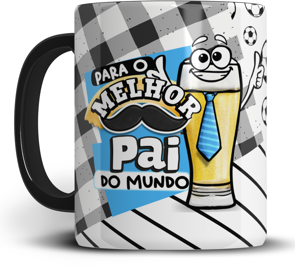 Caneca personalizada de porcelana de alto brilho, interior e alça preta com estampa para pais.