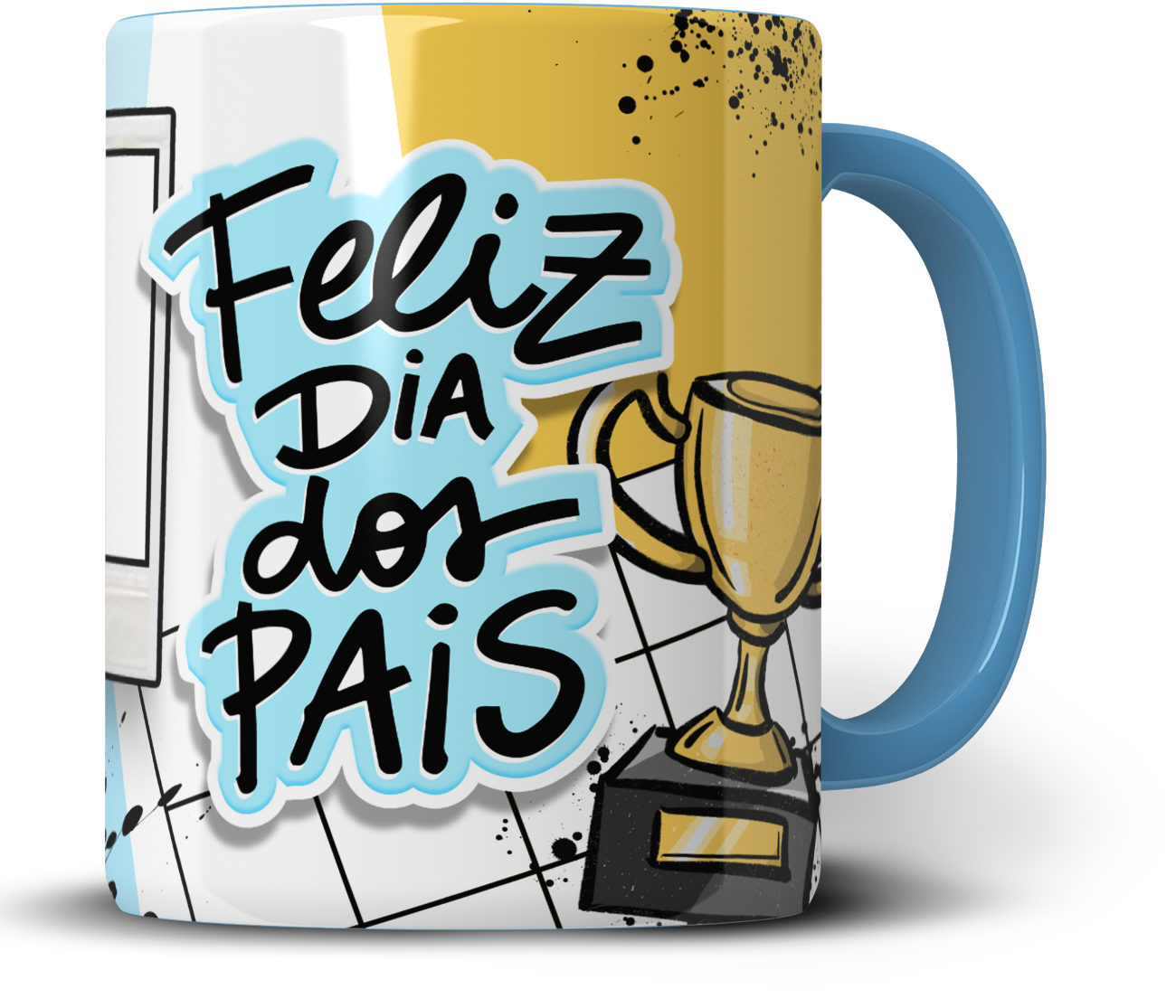 Caneca personalizada de porcelana de alto brilho, interior e alça preta com estampa para pais.